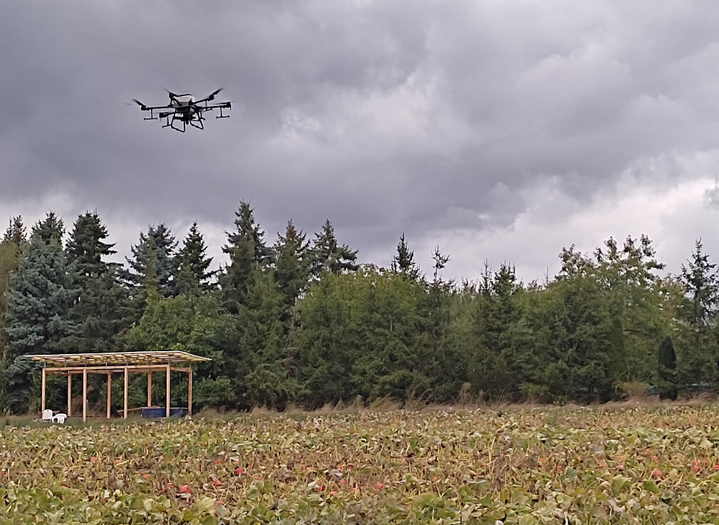 Ein besonderes Highlight bildete die Drohnenvorführung zur Aussaat von Zwischenfrüchten durch das Drones Team Chemnitz.