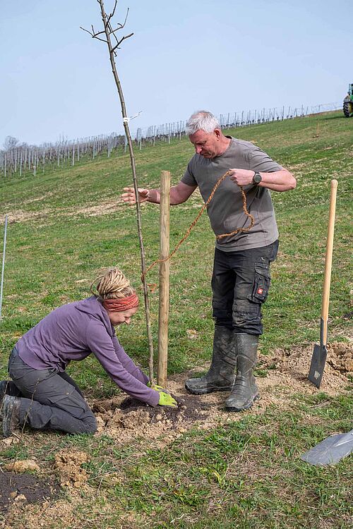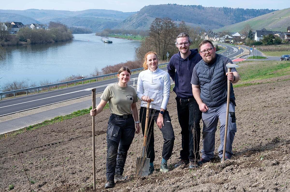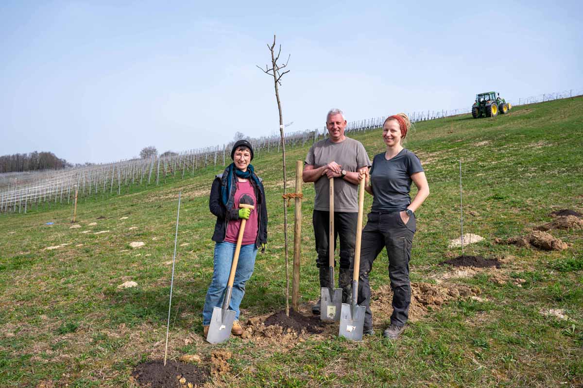 Bonn, 08.04.2026 – Im Rahmen des Modell- und Demonstrationsvorhabens CarboVino zur Förderung des Humusaufbaus im Weinbau wurden in den vergangenen Wochen die Grundsteine für zwei Vitiforstanlagen gelegt: Beim Weingut Blankenhorn in Baden wurden in einem ersten Schritt über 150 Sträucher sowie rund 30 Bäume gepflanzt. Auch an der Mosel, beim Weingut Kirsten-Liebieg, wurden erfolgreich heimische Sträucher und verschiedene Laubbaumarten gesetzt. Beide FAIR’N GREEN Weingüter zeigen sich sehr zufrieden mit dem Start der Vitiforstanlage und sehen dem weiteren Verlauf des Projekts positiv entgegen.